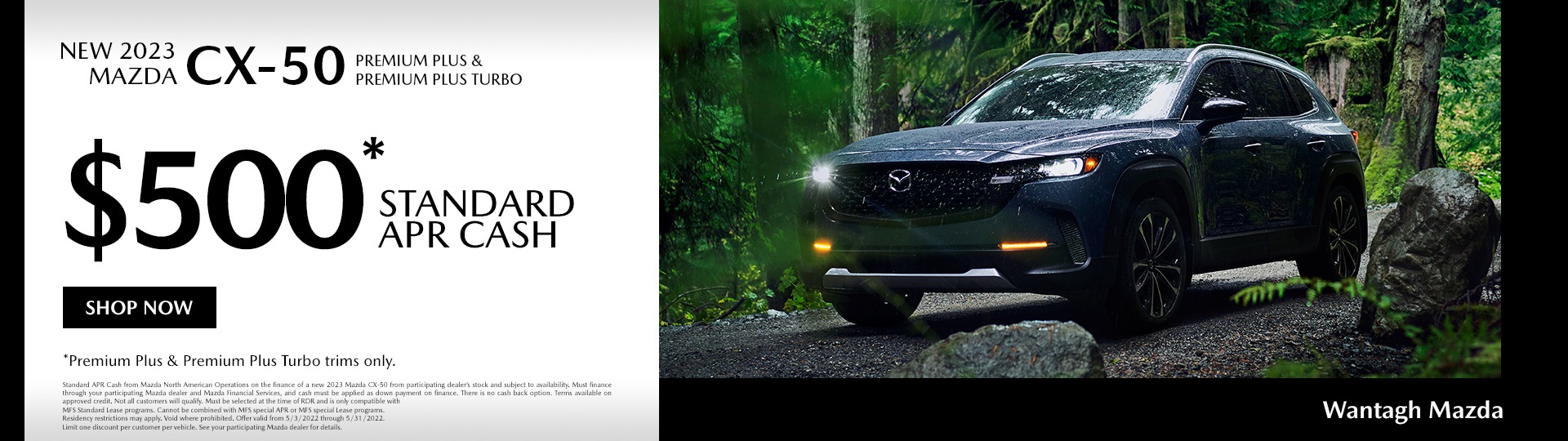 Savings based on value of purchase. Wantagh Mazda online and offline customers enjoy vehicle specials every day. Value Your Trade near Garden City NY.